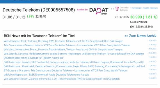Deutsche Telekom am 23.6. 1,61%, Volumen 63% normaler Tage
