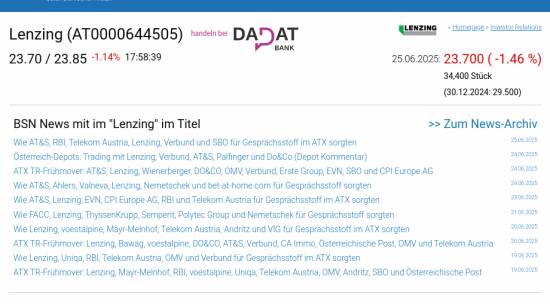 Lenzing am 25.6. -1,46%, Volumen 52% normaler Tage