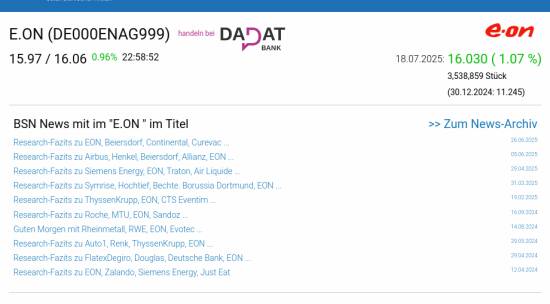 E.ON am 18.7. 1,07%, Volumen 55% normaler Tage