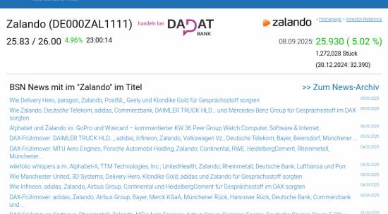 Zalando am 8.9. 5,02%, Volumen 117% normaler Tage
