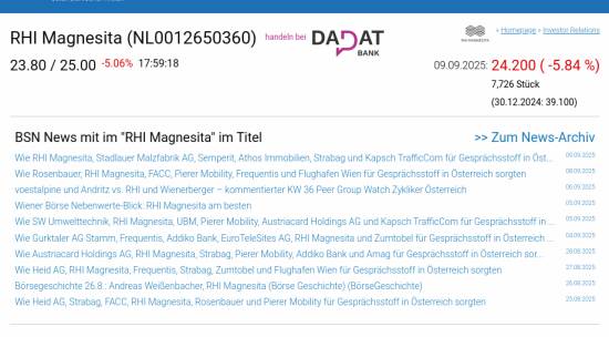 RHI Magnesita am 9.9. -5,84%, Volumen 187% normaler Tage
