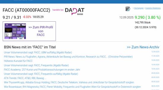 FACC am 12.9. 3,80%, Volumen 382% normaler Tage