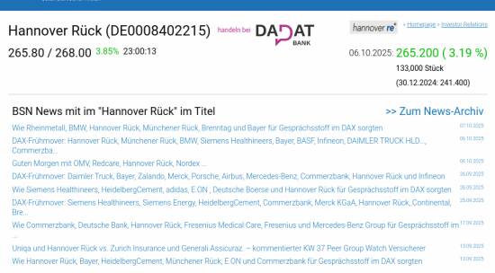 Hannover Rück am 6.10. 3,19%, Volumen 124% normaler Tage