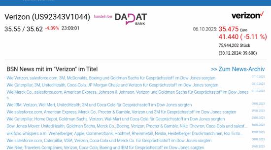 Verizon am 6.10. -5,11%, Volumen 359% normaler Tage