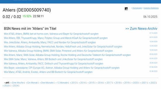 Ahlers am 6.10. 3,45%, Volumen 0% normaler Tage