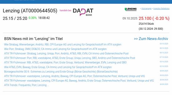 Lenzing am 9.10. -0,20%, Volumen 47% normaler Tage