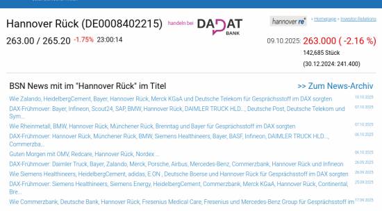 Hannover Rück am 9.10. -2,16%, Volumen 133% normaler Tage