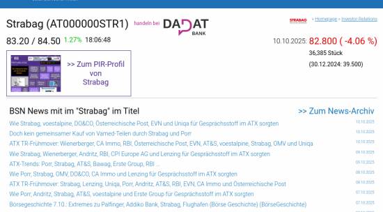 Strabag am 10.10. -4,06%, Volumen 87% normaler Tage