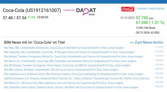 Coca-Cola am 10.10. 1,01%, Volumen 107% normaler Tage