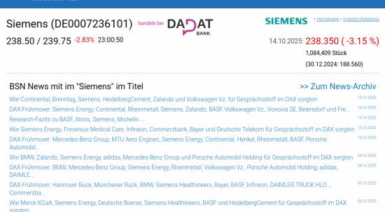 Siemens am 14.10. -3,15%, Volumen 84% normaler Tage