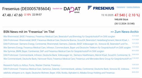 Fresenius am 15.10. -2,10%, Volumen 99% normaler Tage