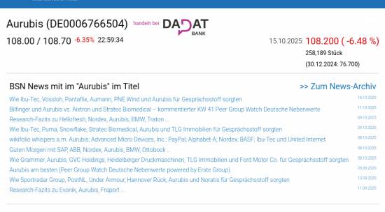 Aurubis am 15.10. -6,48%, Volumen 198% normaler Tage