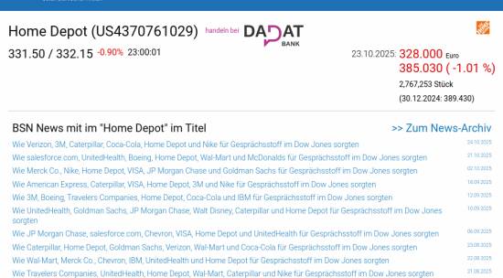Home Depot am 23.10. -1,01%, Volumen 78% normaler Tage