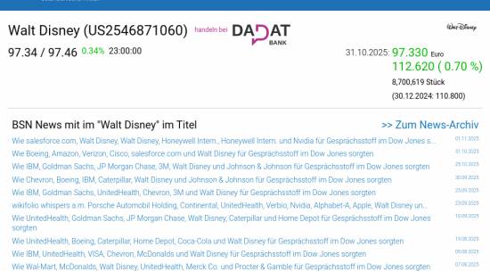 Walt Disney am 31.10. 0,70%, Volumen 93% normaler Tage
