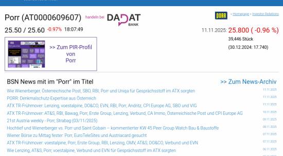 Porr am 11.11. -0,96%, Volumen 60% normaler Tage