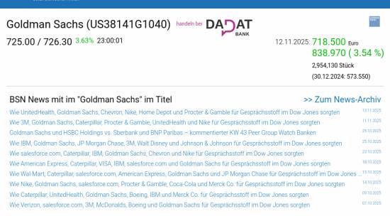 Goldman Sachs am 12.11. 3,54%, Volumen 125% normaler Tage