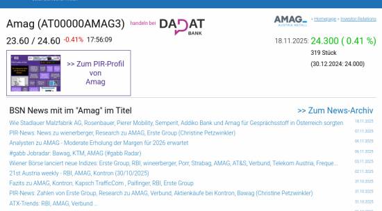 Amag am 18.11. 0,41%, Volumen 23% normaler Tage