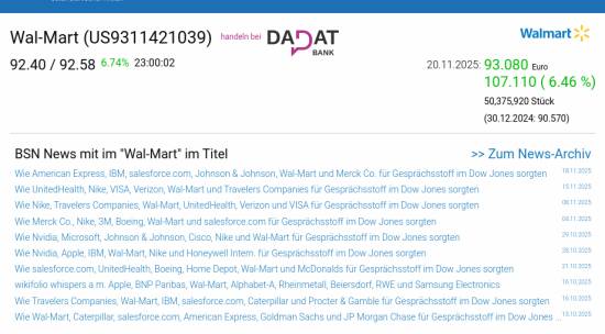 Wal-Mart am 20.11. 6,46%, Volumen 274% normaler Tage