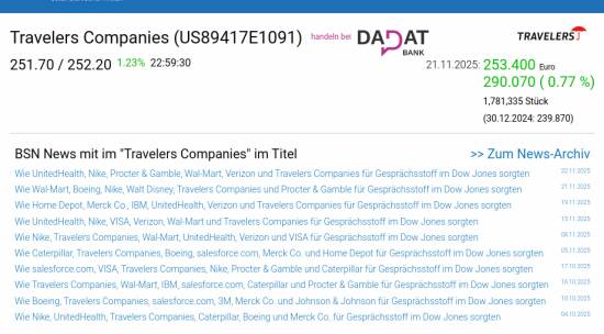 Travelers Companies am 21.11. 0,77%, Volumen 136% normaler Tage