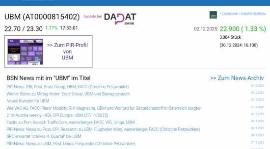 UBM am 2.12. 1,33%, Volumen 92% normaler Tage