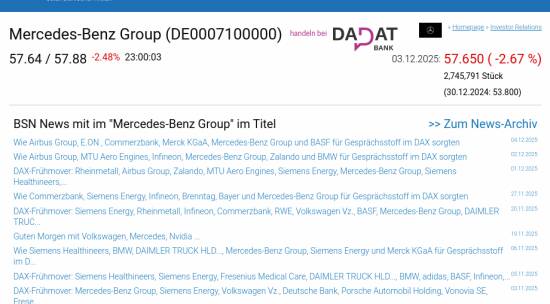 Mercedes-Benz Group am 3.12. -2,67%, Volumen 110% normaler Tage