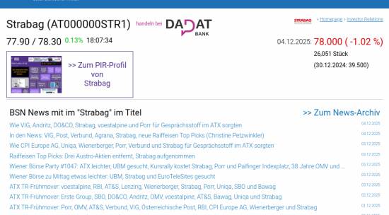 Strabag am 4.12. -1,02%, Volumen 60% normaler Tage