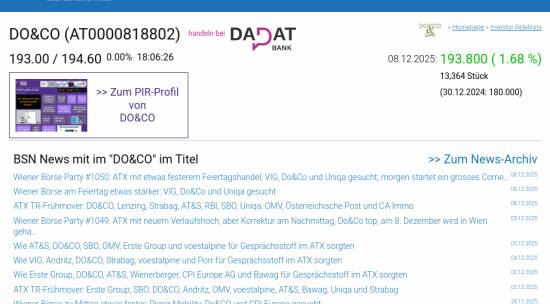 DO&CO am 8.12. 1,68%, Volumen 96% normaler Tage