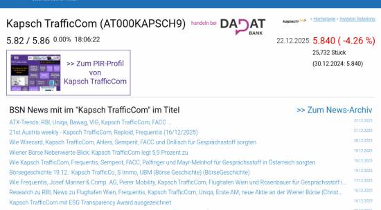 Kapsch TrafficCom am 22.12. -4,26%, Volumen 303% normaler Tage