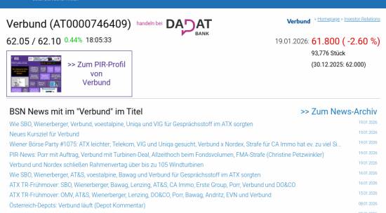 Verbund am 19.1. -2,60%, Volumen 75% normaler Tage