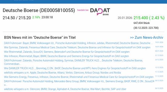 Deutsche Boerse am 20.1. 2,43%, Volumen 136% normaler Tage
