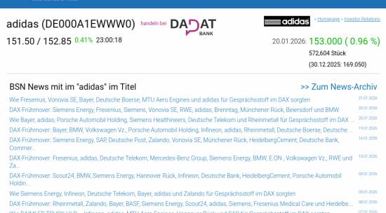 adidas am 20.1. 0,96%, Volumen 75% normaler Tage