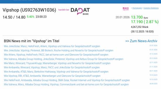 Vipshop am 20.1. 2,87%, Volumen 155% normaler Tage