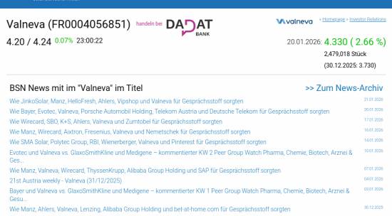 Valneva am 20.1. 2,66%, Volumen 233% normaler Tage