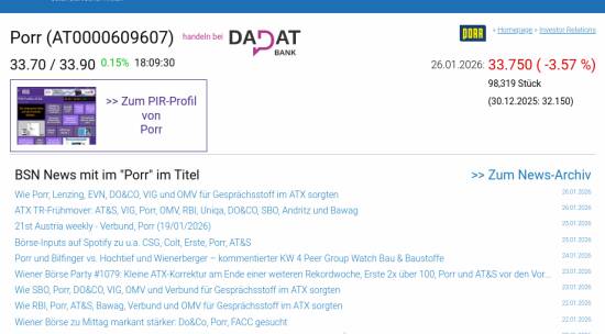 Porr am 26.1. -3,57%, Volumen 207% normaler Tage