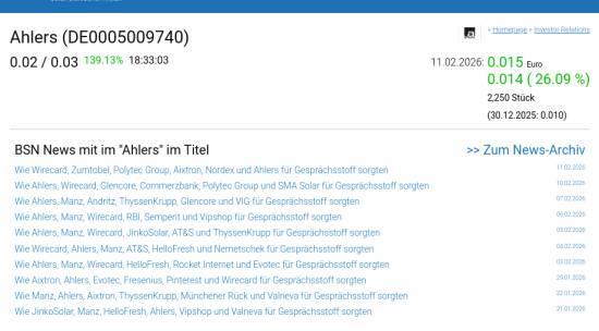 Ahlers am 11.2. 26,09%, Volumen 36% normaler Tage