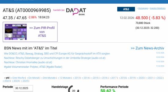 AT&S am 12.2. -5,83%, Volumen 45% normaler Tage
