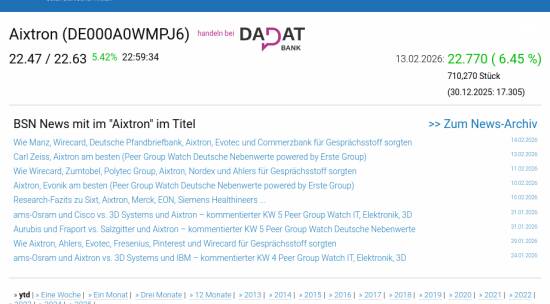 Aixtron am 13.2. 6,45%, Volumen 93% normaler Tage