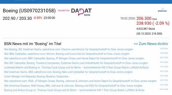 Boeing am 18.2. -2,09%, Volumen 61% normaler Tage