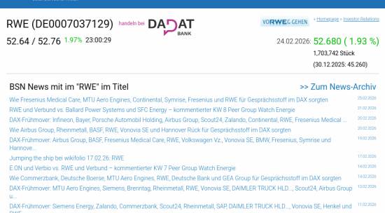 RWE am 24.2. 1,93%, Volumen 86% normaler Tage