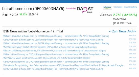 bet-at-home.com am 24.2. 32,85%, Volumen 1633% normaler Tage