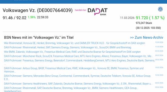 Volkswagen Vz. am 11.3. 1,57%, Volumen 108% normaler Tage