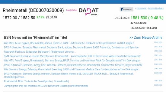 Rheinmetall am 1.4. 9,48%, Volumen 183% normaler Tage