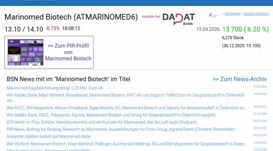 Marinomed Biotech am 13.4. 6,20%, Volumen 341% normaler Tage