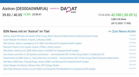 Aixtron am 15.4. 20,35%, Volumen 289% normaler Tage