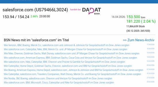 salesforce.com am 16.4. 2,04%, Volumen 92% normaler Tage