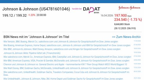 Johnson & Johnson am 16.4. -1,73%, Volumen 101% normaler Tage
