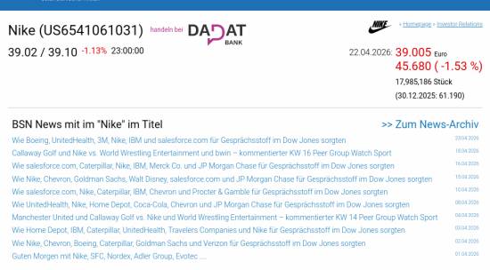 Nike am 22.4. -1,53%, Volumen 90% normaler Tage
