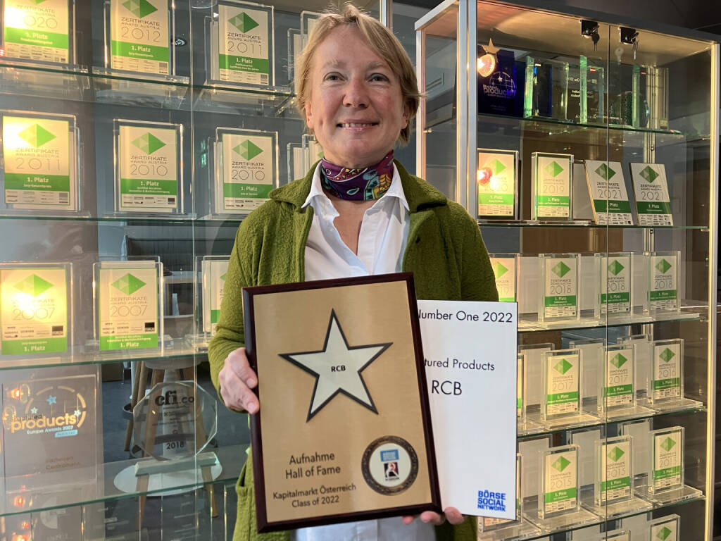 Heike Arbter: Das Zertifikate Team der Raiffeisen Centrobank (seit 1.12. Raiffeisen Zertifikate) ist mit dem Engagement bei Optionsscheinen und Zertifikaten 2022 nicht nur zum 16. Mal in 16 Jahren Zertifikate Award Austria Gesamtsieger geworden, sondern wurde auch zum 9. Mal in 9 Jahren Number One Awards zur Number One gekürt. Gesucht ist hier stets der größte Emittent im Bereich structured products der Wiener Börse, wobei es nach der Anzahl der gelisteten Produkte geht.