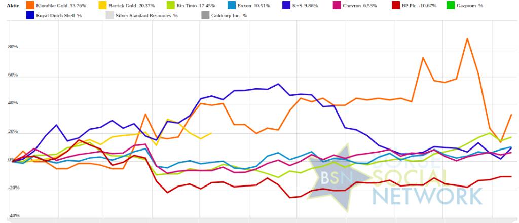 Klondike Gold-Aktie am besten: 23,36% Plus. Dahinter
