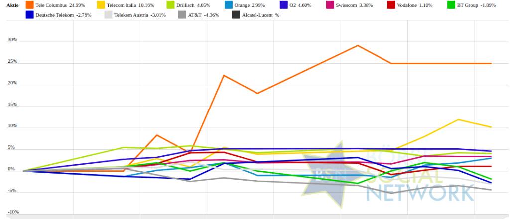 Tele Columbus 20,81% (Vorjahr: 148,33 Prozent) im Plus. Dahinter